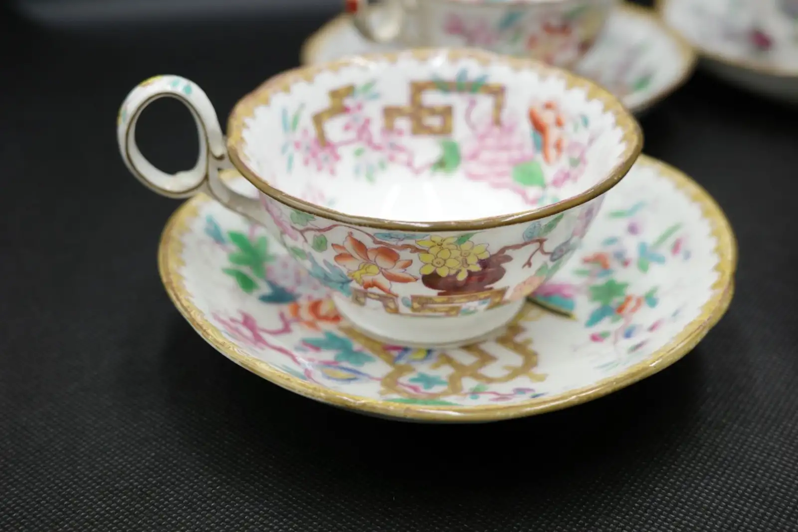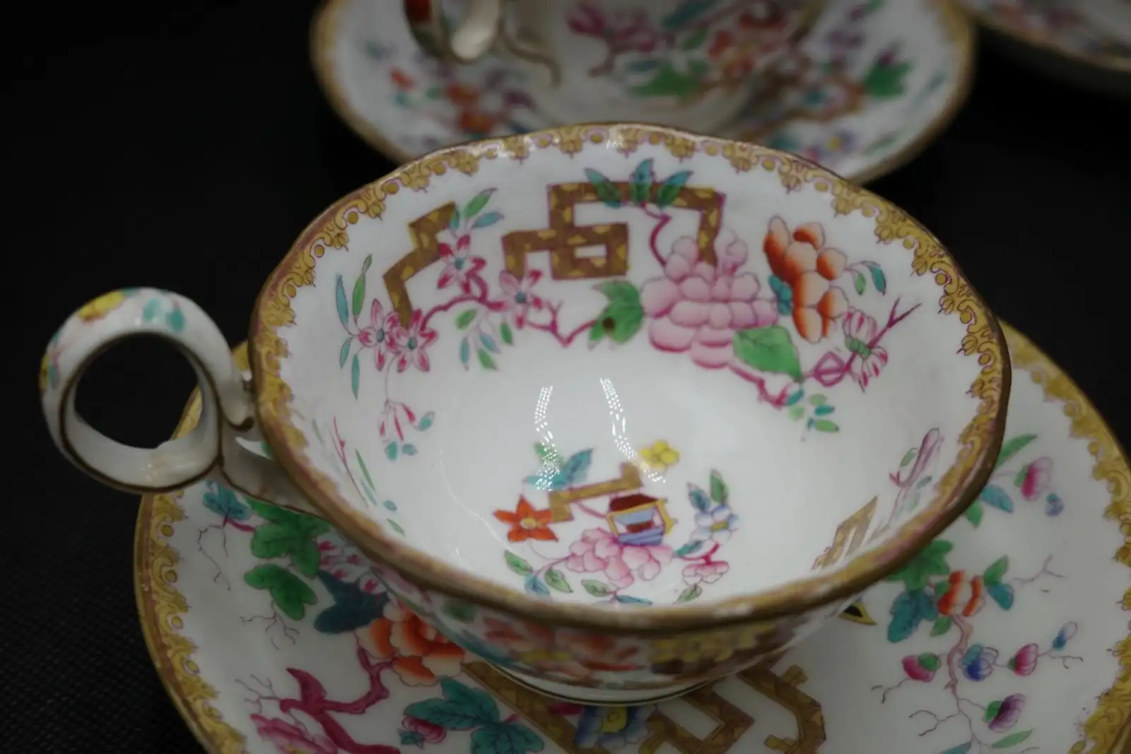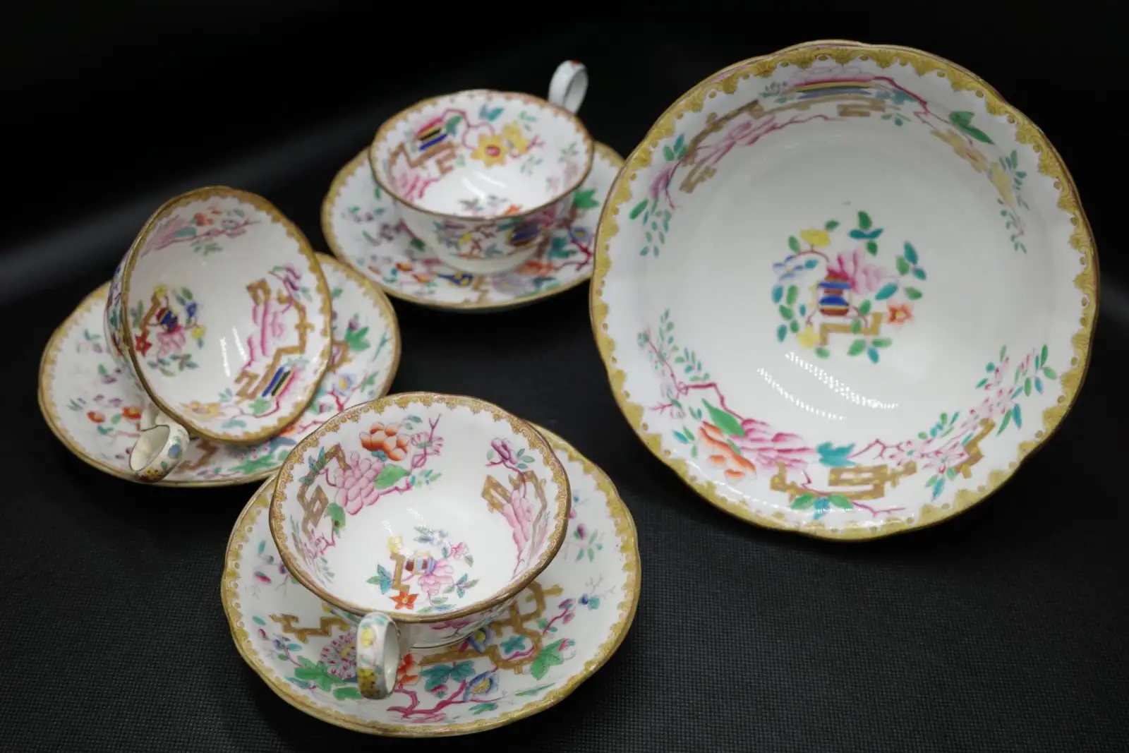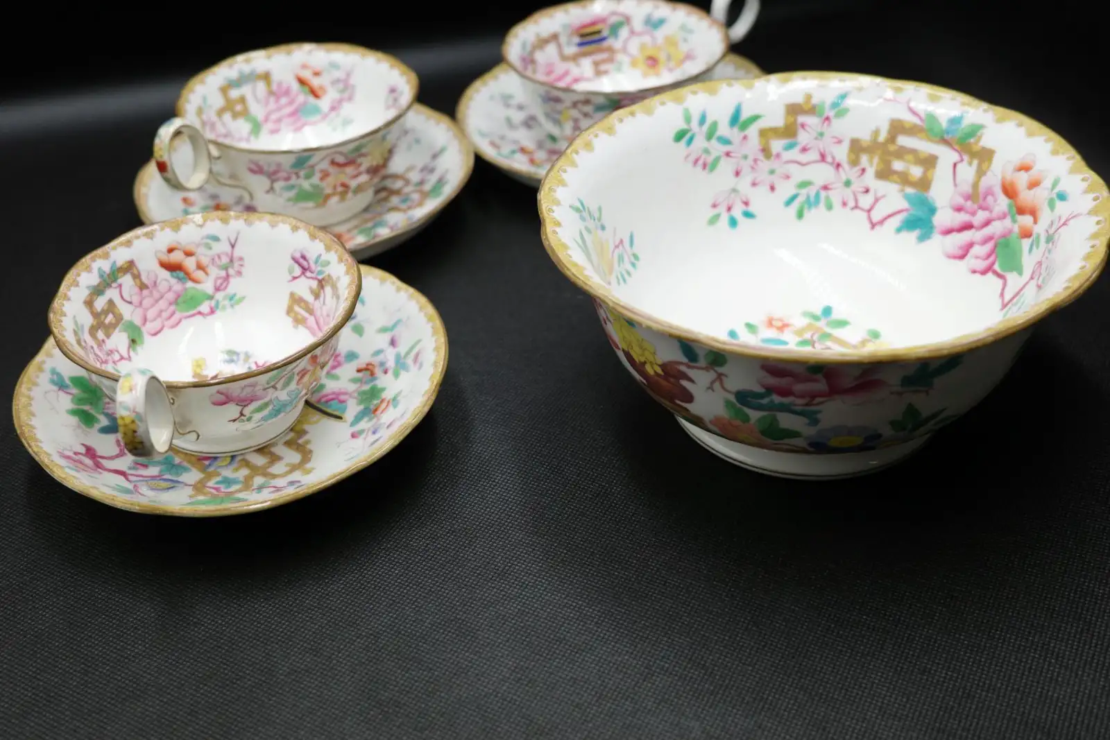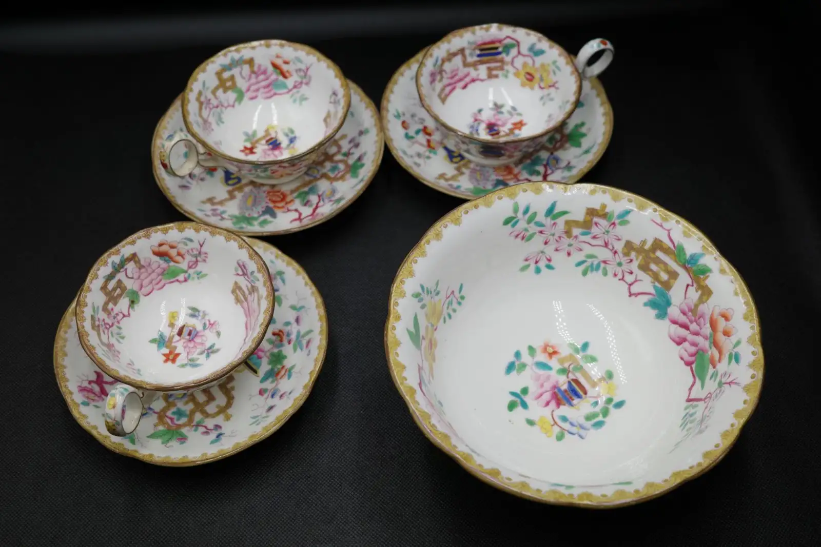 Thomas Minton Chinese Tree no2067 Large Sugar Bowl with Three Tea Cups and Saucers Lovely Set